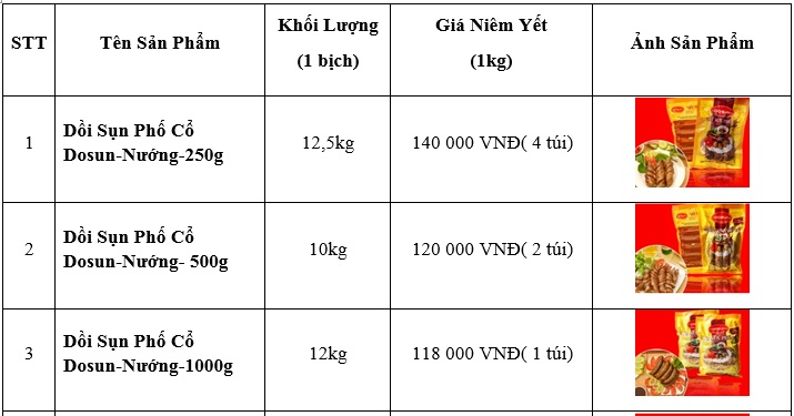 bảng giá dồi sun dosun